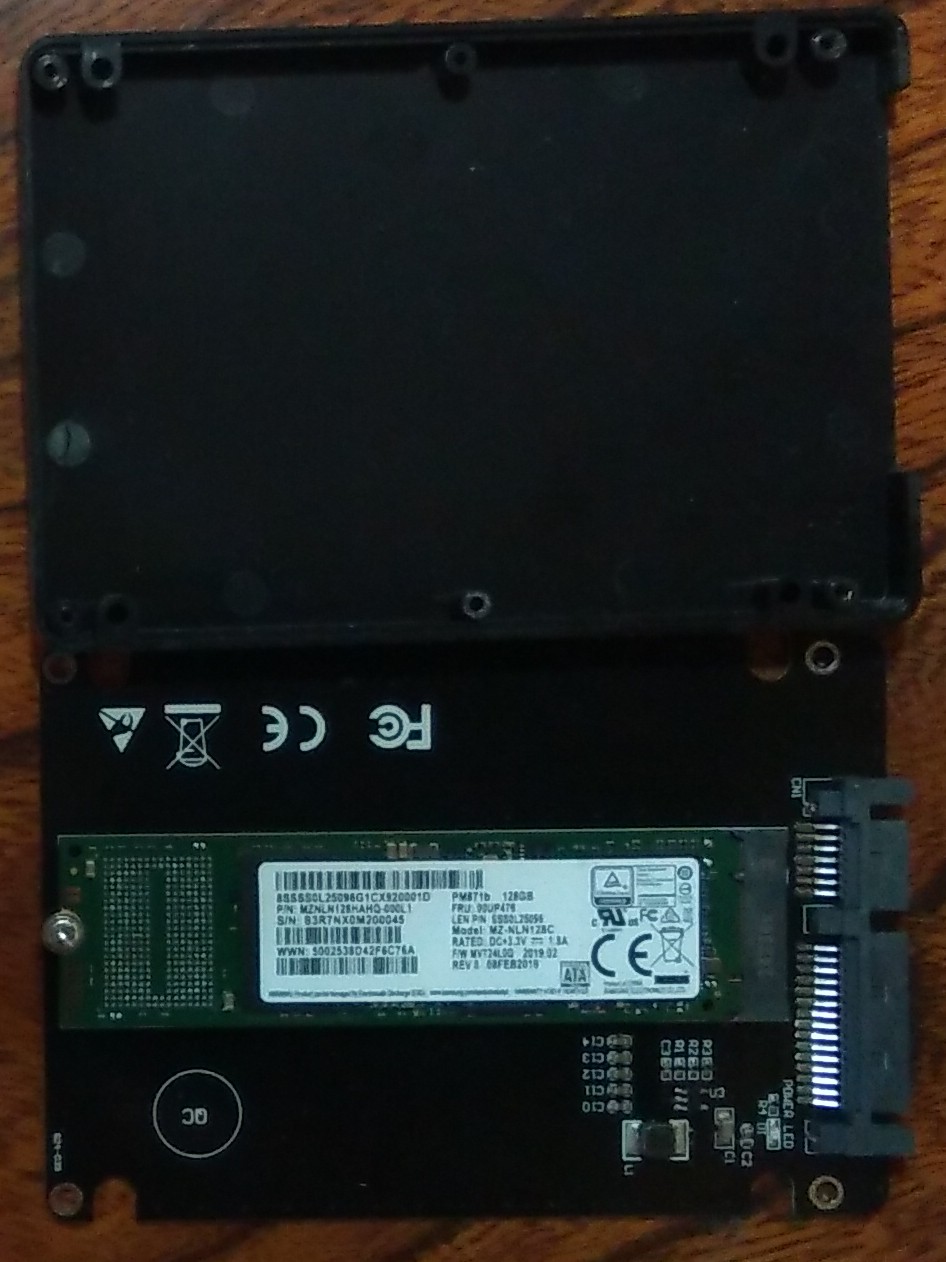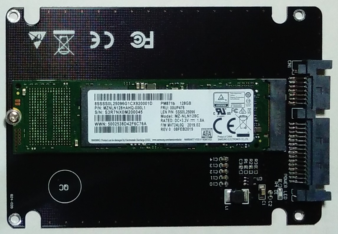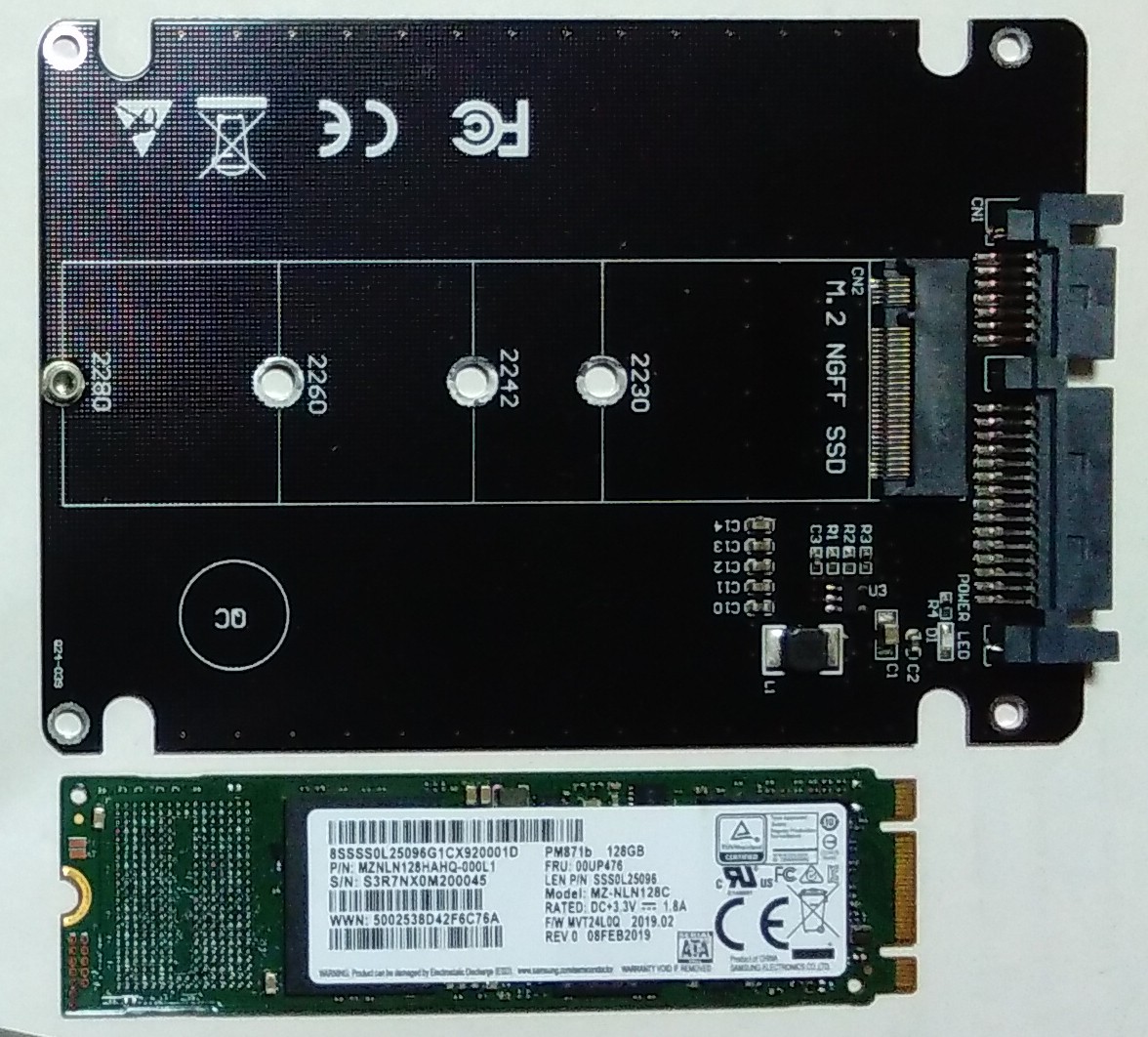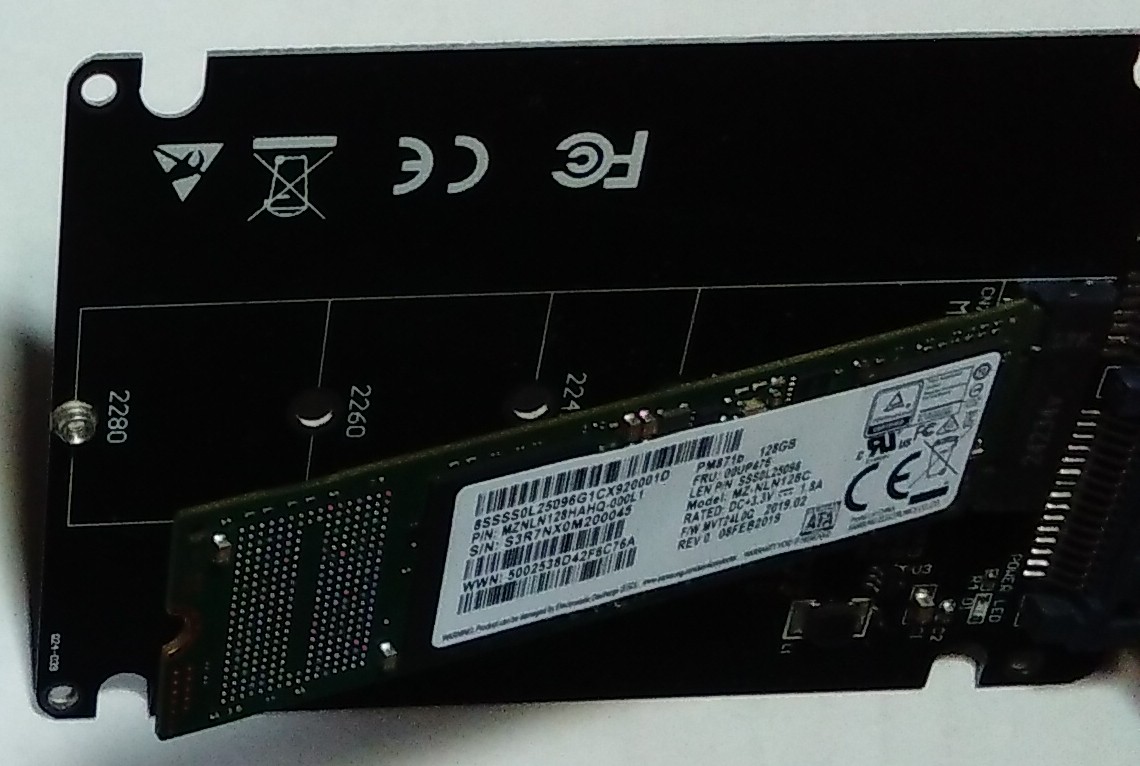 この型の場合にたとえば128GBのものを実装していたものを256GBとか512GBに換装したとすると基板から取り外した128GBのSSDが残ることになります。