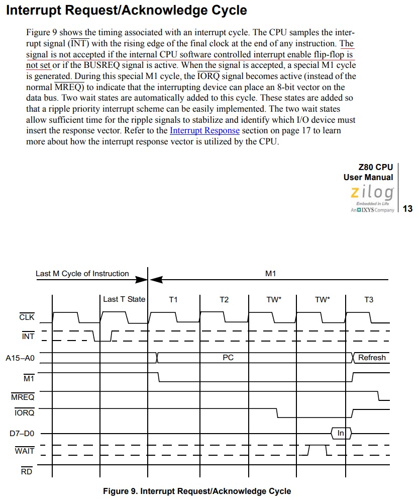 INT信号は命令の最後のマシンサイクルの最後のクロックの立ち上がりエッジで認識されます。