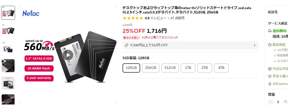 私が購入したのは全て中古品ですが、なんですかAliexpressなどでは新品のSSDが格安で売られているそうなのですね。