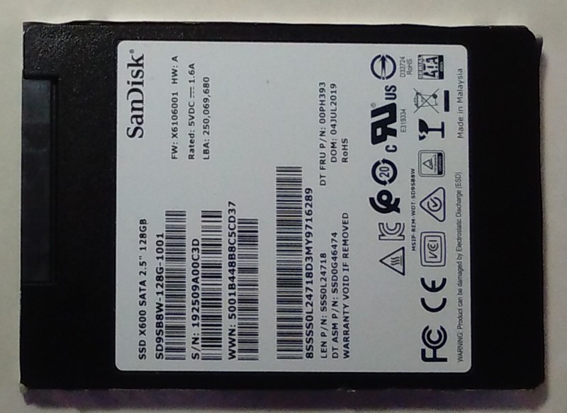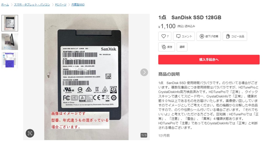 SanDiskSSD SATA128GBが送料込み1100円は安いでしょう。