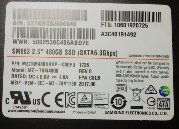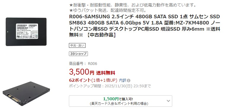 中古ですけれどSAMSUNGの480GB SSDが送料無しで3500円は安いと思います。