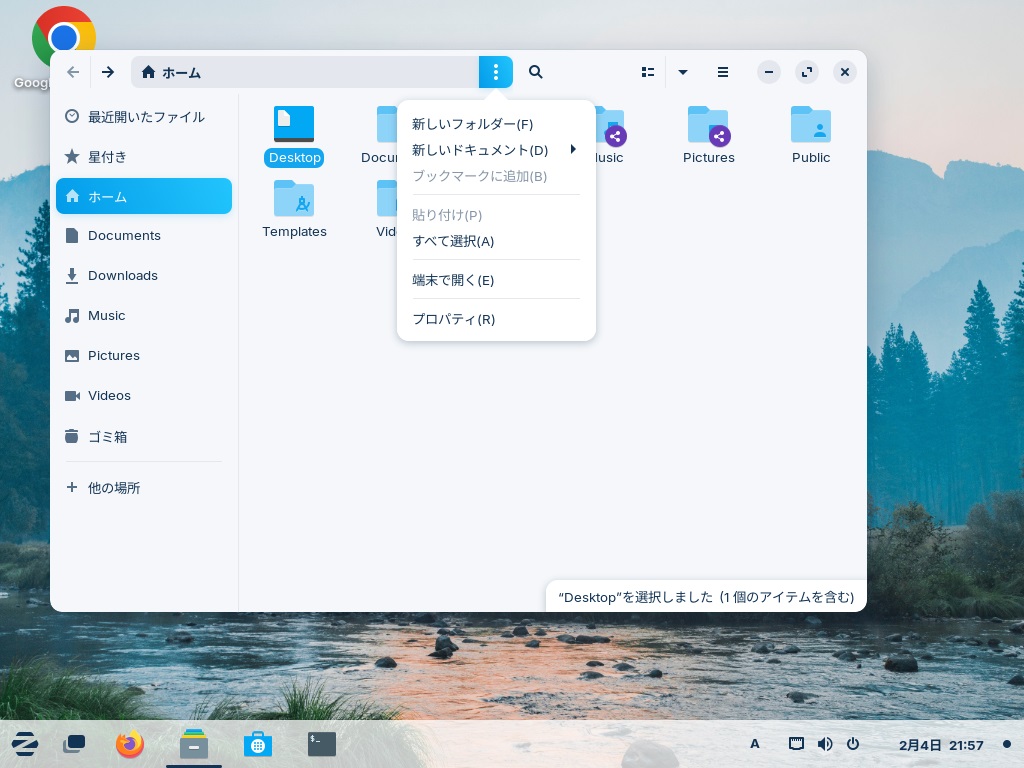 下はZORIN OS 17のhome画面です。