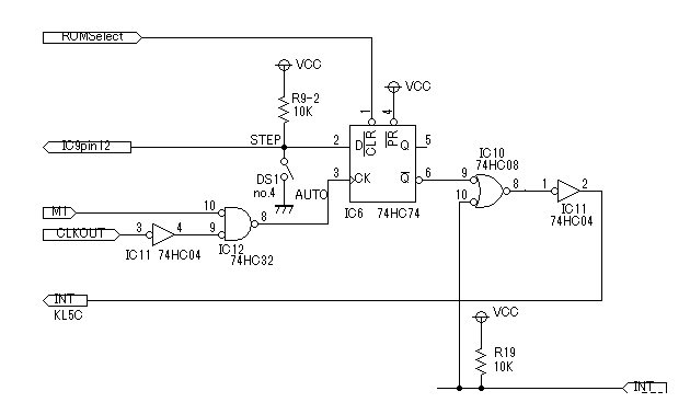 ND80KL5Cの74HC74のCL入力はND80Z3.5とは逆のロジックになっているように見えますがここはAM188と兼用の回路にしたために工夫がしてあります。