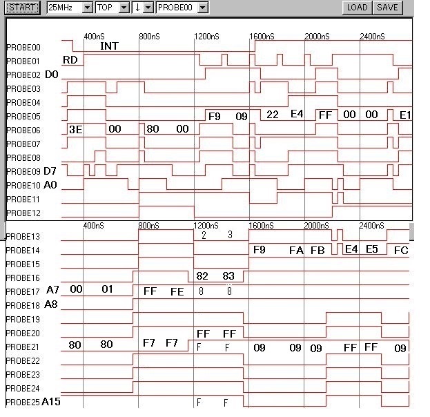 INT信号は3Eのところでアクティブになっていますし3E 00はユーザープログラムの最初の命令です。